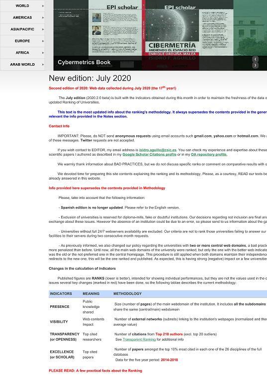 Опубліковано нову редакцію міжнародного рейтингу університетів світу Ranking Web of Universities (Webometrics). Рейтинг складає Національна дослідницька рада Іспанії, яка досліджує університети світу вже 17 рік поспіль, оцінюючи їх діяльність через показники представленості університету у веб-просторі.