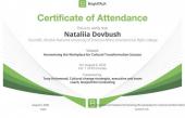 Інспектор наукового відділу Кременчуцького льотного коледжу Харківського національного університету внутрішніх справ Наталія Довбиш дистанційно пройшла вебінар на тему «Humanising the Workplace for Cultural Transformation Success (Гуманізація робочого місця для успіху культурної трансформації)» та отримала сертифікат. Спікером вебінару став Тоні Холмвуд – стратег по культурним змінам, керівник та командний тренер щодо покращення поведінки, яка призводить до розвитку у професійному сенсі.
