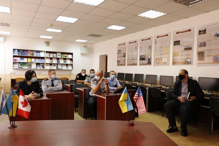 На початку зустрічі ректор Харківського національного університету внутрішніх справ полковник поліції Дмитро Швець розповів про структуру університету, його основні напрями діяльності, окреслив пріоритети університету та його готовність щодо опанування нових стандартів у системі підготовки працівників поліції, а також висловив готовність ХНУВС до плідної співпраці з міжнародною програмою ICITAP.