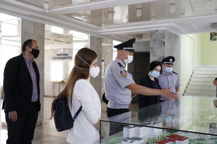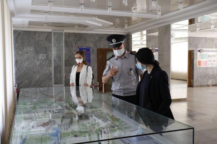 Після цього гостей було ознайомлено з територією та навчально-матеріальною базою ХНУВС з метою подальшого проведення тренінгів для поліцейських офіцерів громади на території університету.