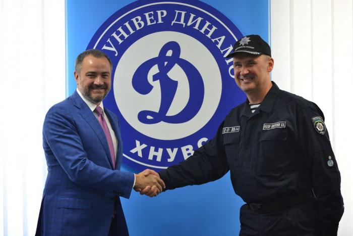 Футбольний клуб «Універ-Динамо» Харківського національного університету внутрішніх справ вперше взяв участь у Чемпіонаті Харківської області в сезоні 2017 року. Перше коло чемпіонату команда проводила на полях суперників, а вже старт другого пройшов на щойно зведеному стадіоні університету «Динамо-Арена». Історичним матчем-відкриттям стала гра між ФК «Універ-Динамо» та ФК «Енергетик» смт Солоницівка, яка завершилася бойовою нічиєю 1:1. Варто відмітити, що дебютний гол у складі динамівців забив Денис Гнилицький, який того часу навчався у магістратурі, а зараз працює фахівцем на факультеті № 2. У підсумку, за результатами обласних перегонів, команда посіла 11-те місце із 22 команд-учасниць.