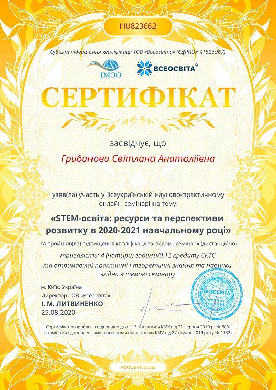 Голова циклової комісії природничих дисциплін Кременчуцького льотного коледжу Харківського національного університету внутрішніх справ Яна Долударєва та викладач Світлана Грибанова взяли участь у Всеукраїнському науково-практичному онлайн-семінарі «STEM-освіта: ресурси та перспективи розвитку у 2020–2021 навчальному році».