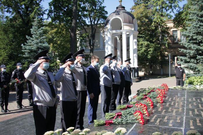 Хвилиною мовчання, салютом та покладанням квітів пам'ять загиблих вшанували представники особового складу ГУНП в Харківській області на чолі з начальником, генералом поліції третього рангу Валерієм Сокуренком. Квіти також поклали ректор Харківського національного університету внутрішніх справ полковник поліції Дмитро Швець, працівники та курсанти вишу – Почесна варта, салютна група, духовий оркестр.