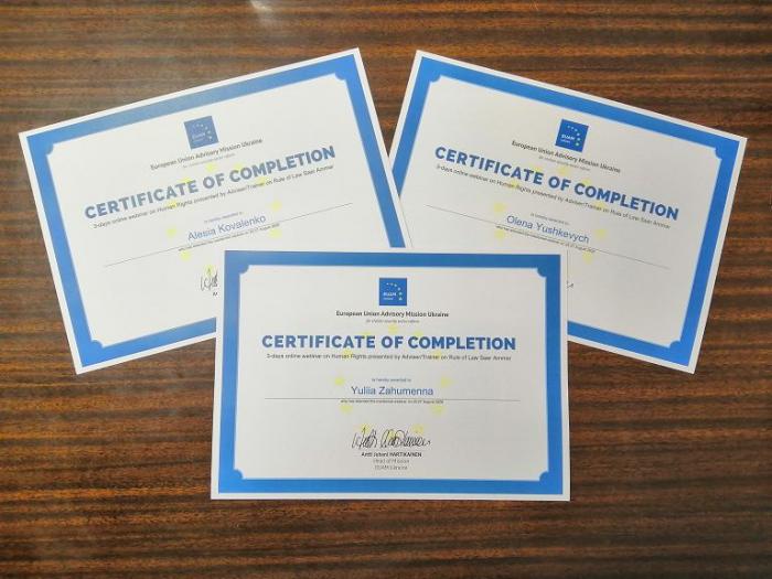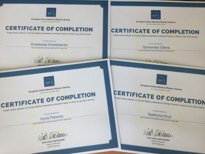 Під час семінару було розглянуто загальні питання про права людини, гендерної рівності, проблема дискримінації, дотримання прав вразливих груп осіб тощо. Після завершення семінару учасники отримали сертифікати від Консультативної місії Європейського Союзу в Україні.