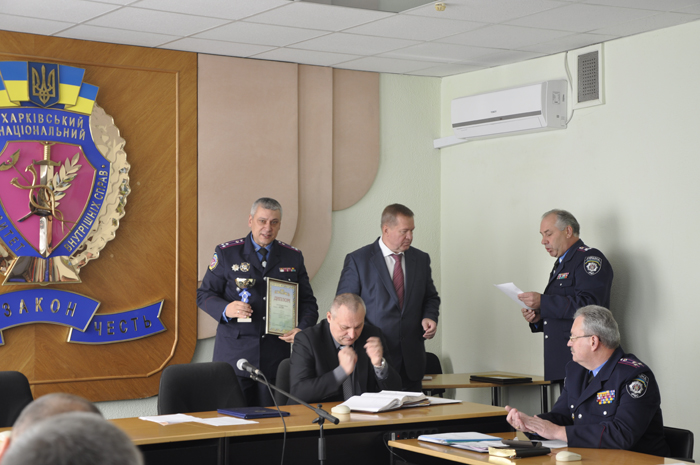 З нагоди професійного свята – Дня юриста Харківська обласна державна адміністрація та Харківська обласна рада відзначили внесок представників Харківського національного університету внутрішніх справ у розбудову правової держави, захист конституційних прав і свобод громадян, зміцнення законності та правопорядку. Під час засідання ректорату нагороди вручив ректор університету генерал-полковник міліції Сергій Гусаров.