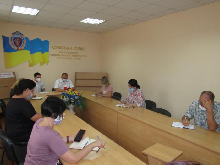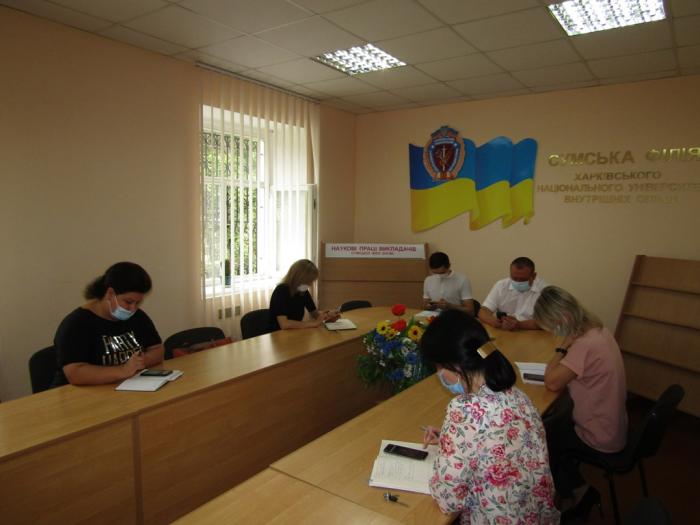 З метою вивчення умов забезпечення якості надання освітніх послуг закладами вищої освіти зі специфічними умовами навчання, які здійснюють підготовку поліцейських, було проведено зустріч з керівниками структурних підрозділів та здійснено анкетування співробітників та курсантів Сумської філії.