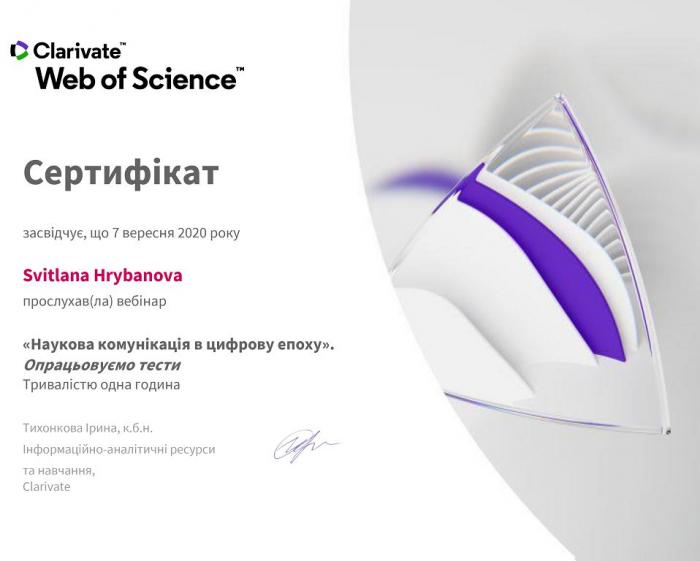 Викладач-методист циклової комісії природничих дисциплін Світлана Грибанова взяла участь у вебінарі «Наукова комунікація в цифрову епоху».