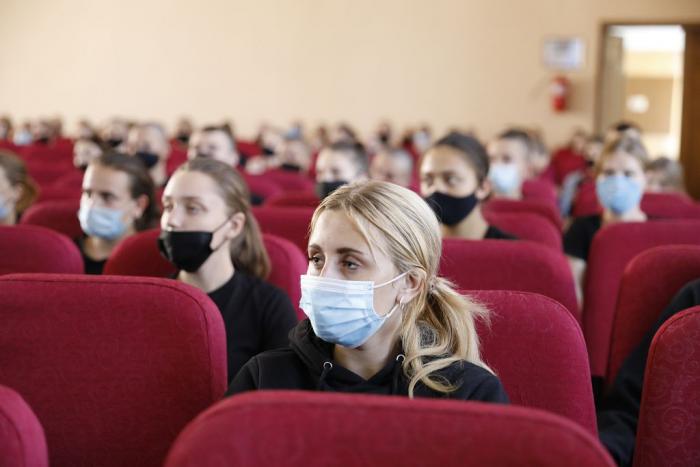 Зустріч з ветеранами відбувалася у двох залах одночасно, щоб дотриматися карантинних вимог. Захід відкрив начальник табірного збору, проректор Анатолій Клочко. Ветерани у своїх виступах розповідали про службовий шлях, пригадували цікаві історії з професійної діяльності, давали настанови курсантам щодо майбутньої професії – бути вірними Присязі, відданими службі й дотримуватися закону.