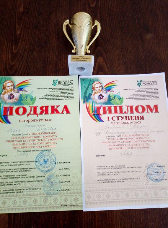Марія Лещенко – студентка Кременчуцького льотного коледжу Харківського національного університету внутрішніх справ – отримала Диплом I ступеня та кубок переможниці у номінації «Твір» у VI Всеукраїнському (XVI Всекримському) конкурсі учнівської та студентської творчості «Змагаймось за нове життя!», присвяченого творчості Лесі Українки. Керівником студентки стала голова циклової комісії філологічних дисциплін, викладачка української мови та літератури Оксана Савченко, яка допомагала та підтримувала Марію під час пошуку матеріалів і написання обраної теми. Оксана Савченко також була відзначена організаторами конкурсу й отримала подяку.