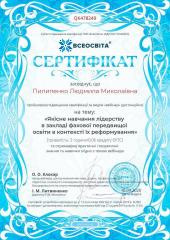 Викладач отримала сертифікат. Набуті нею знання та навички будуть використані в освітньому процесі.