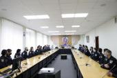 Зі слухачами первинної професійної підготовки зустрівся ректор університету Дмитро Швець та заступник директора інституту післядипломної освіти майор поліції Світлана Фіалка. Ректор націлив слухачів на здобуття якісної освіти, дотримання службової дисципліни та правил внутрішнього розпорядку.