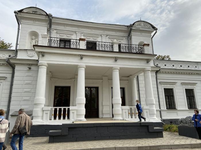 За півгодини потому опинились у також маленькому, але мальовничому місті Тростянець. Перлиною його є поміщицька садиба Надаржинських-Голіциних-Кенігів, до ансамблю якої входять палац, схожа на фортецю споруда «Круглий двір» та парк в урочищі «Нескучне». Харків’яни поблукали по манежу «Круглого двору», де сміливці спробували на власній шиї тягар в’язнівських колодок, а дівчата біля масивних дверей з залізним кільцем-брязкальцем загадували бажання щодо швидкого заміжжя. У палаці зацікавила меморіальна кімната, присвячена П. І. Чайковському, який влітку 1864 р. гостював тут і написав увертюру до драми Островського «Гроза»; чудові картини, подаровані художниками, що працювали в садибі на пленері. І малим, і дорослим відвідувачам садиби, без перебільшення, сподобався розташований у лівому крилі будови Музей шоколаду, де туристи фотографувалися біля величезної шоколадної корони, шоколадного погруддя ацтекського кацика Монтесуми та веселої фіолетової корівки Milka.