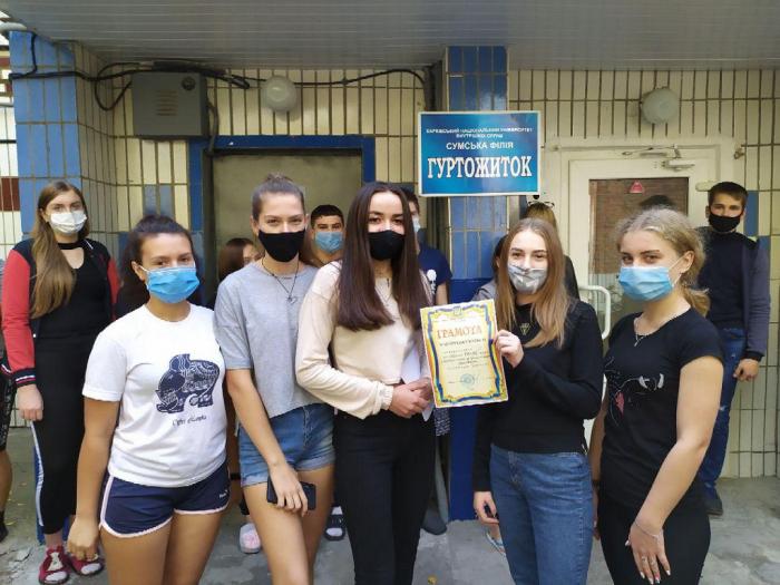 У гуртожитку Сумської філії проведено конкурс-огляд на кращу кімнату «Входини». Головними критеріями оцінювання були: естетичний вигляд кімнати, її санітарно-гігієнічний стан, стан збереження майна в кімнаті, умови для навчання, дотримання студентами правил проживання у гуртожитку.