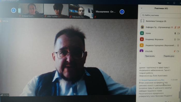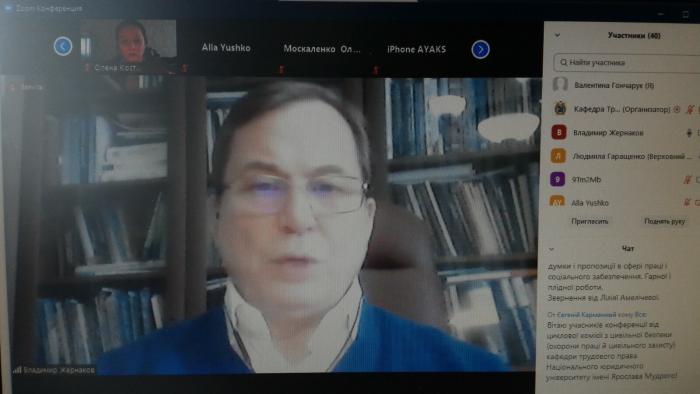 В онлайн-форматі на платформі Zoom відбулася Х Міжнародна науково-практична конференція «Юридичні гарантії забезпечення прав громадян на працю і соціальний захист», організована кафедрою трудового права Національного юридичного університету імені Ярослава Мудрого.