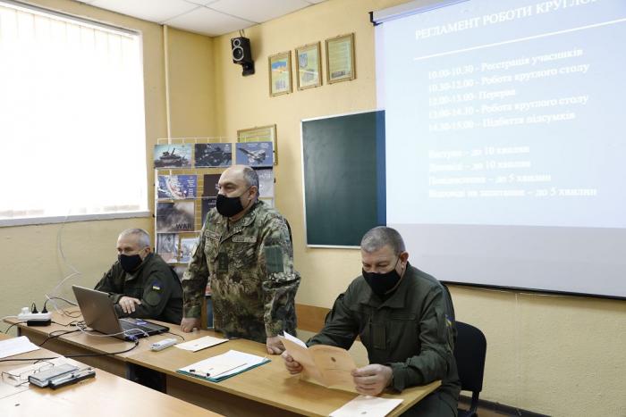 Під час роботи круглого столу обговорювалися питання організації освітнього простору в умовах глобалізації, проблеми підготовки майбутніх офіцерів, заходи згуртування військового колективу, патріотичне виховання майбутніх офіцерів, психолого-педагогічні засади виховання військовослужбовців.