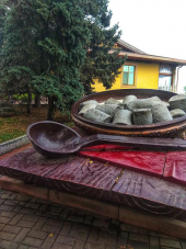 Поряд із пам’ятниками класикам красується пам’ятний знак Полтавській галушці, у ложку якого мостяться всі туристи.