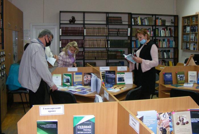 Науково-педагогічний склад кафедри правового забезпечення господарської діяльності факультету № 6 ознайомився з новими надходженнями бібліотеки Харківського національного університету внутрішніх справ. Працівники бібліотеки ознайомили працівників кафедри з новою юридичною літературою, яку бібліотека отримала від провідних видавництв юридичної літератури. Серед них є офіційні, наукові та навчальні видання. Вони будуть корисними як для курсантів, студентів, так і для науковців та викладачів вишу. Серед надходжень є і праці співробітників кафедри, зокрема Вікторії Фурси.