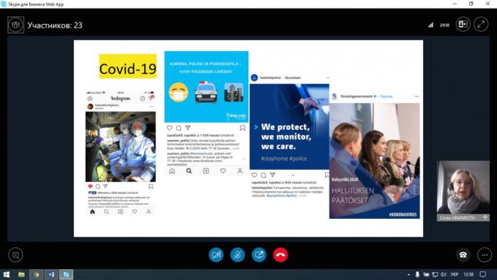 Спікером заходу виступила радник/тренер з кримінальних розслідувань Регіонального представництва КМЄС у Харкові Кріста Гранрот. Вона розповіла про психологічні аспекти взаємодії поліції з громадськістю, ознайомила з техніками ведення допиту, психологією свідка, правилами проведення бесід з постраждалими внаслідок критичного інциденту, а також детально висвітлила особливості роботи поліції в умовах пандемії COVID-19. Науково-педагогічні та наукові працівники ХНУВС, здобувачі вищої освіти, представники КЛК ХНУВС та Сумської філії, які взяли участь у вебінарі, ставили спікеру багато запитань та отримали на них змістові відповіді.