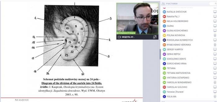 Представники Харківського національного університету внутрішніх справ – науково-педагогічний склад кафедри криміналістики, судової експертології та домедичної підготовки факультету № 1, працівники відділу міжнародного співробітництва, слухачі магістратури факультету № 1, студенти університету та науково-педагогічний склад факультету № 6 – взяли участь у вебінарі на тему «Дерматоскопія у криміналістиці – вибрані аспекти», який відбувся в онлайн-форматі на платформі Clickmeeting.