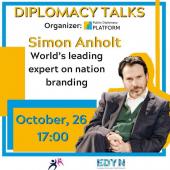 Під час заходу спікер розповів про особливості, що сприяють формуванню позитивного іміджу країни, про способи підвищення рівня впізнаваності країни на міжнародній арені, про неефективні методи брендингу та методи, що можуть змінити негативний імідж держави на позитивний, а також проаналізував існуючий імідж України. Саймон Анхольт поділився з молоддю своїми думками щодо побудови кар'єри в галузі публічної дипломатії.