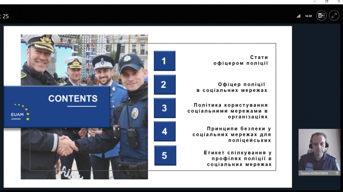 У Харківському національному університеті внутрішніх справ відбувся вебінар на тему «Офіцер чи звичайний користувач? Поліцейські в соціальних мережах». Основним спікером заходу виступив старший радник з питань загальної правоохоронної діяльності Регіонального представництва Консультативної місії ЄС у м. Харків Туомо Корхонен.