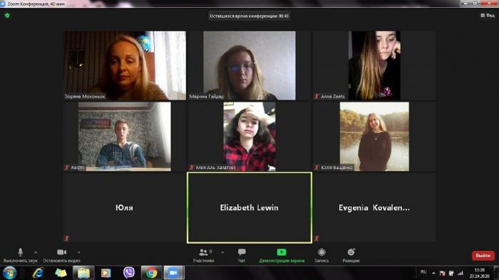 Студентсько-курсантським Парламентом Сумської філії Харківського національного університету внутрішніх справ, який очолює студентка 3 курсу Марина Гайдар, було організовано у режимі ZOOM-конференції перше засідання English speaking club. Захід провели голова науково-навчального сектору СКП Юлія Ващенко за участі старшого викладача кафедри гуманітарних дисциплін Зоряни Мохоньок