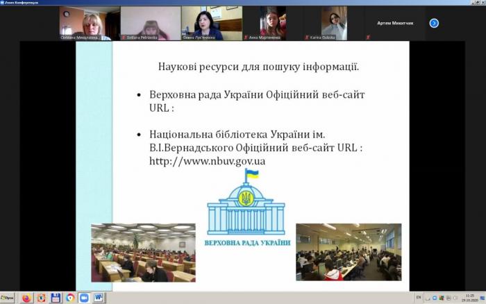 Друга частина доповіді була присвячена основним підходам до підготовки наукової доповіді. Олена Анатоліївна наголосила на необхідності дотримання доброчесної поведінки здобувачем вищої освіти як у рамках освітнього процесу, так і наукової діяльності, ознайомила присутніх з основними науковими ресурсами та методами пошуку інформації для підготовки наукового повідомлення.