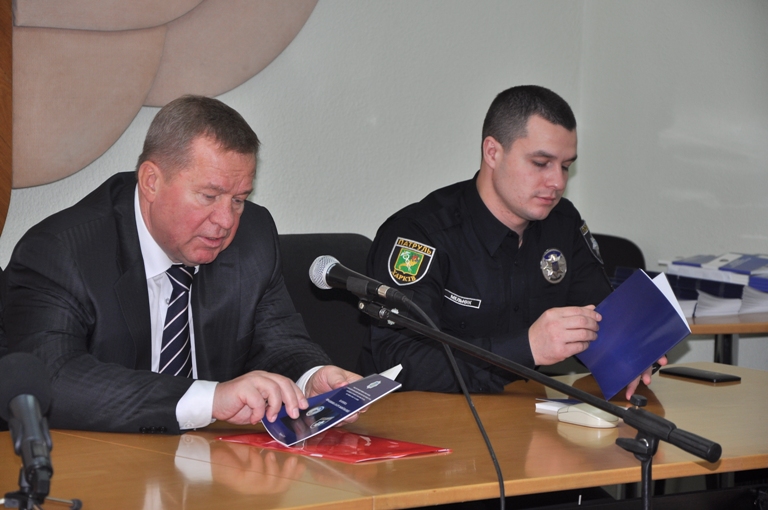 Ректор Харківського національного університету внутрішніх справ Сергій Гусаров передав представникам нової поліції Харкова по 1100 екземплярів «Пам’яток працівника патрульної поліції» та «Довідників працівника патрульної поліції», які підготовлено та видано науковцями університету.