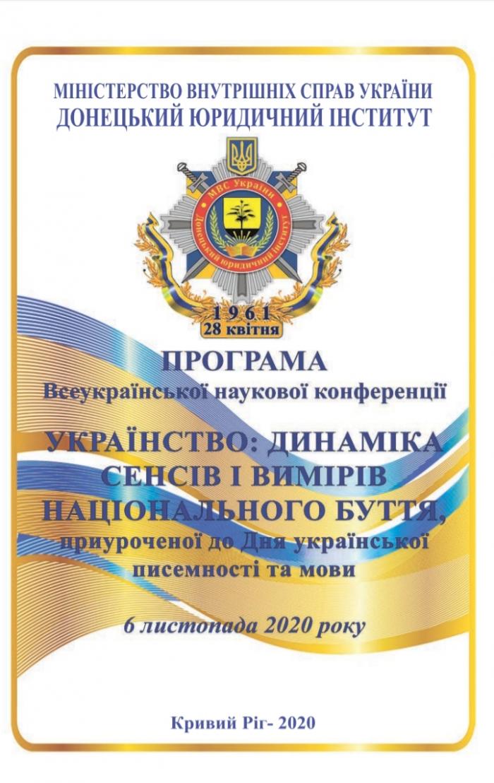 Так, доцент кафедри кандидат історичних наук Віталій Заборовський і старша викладачка кафедри кандидатка філологічних наук Наталія Кобилко взяли участь у Всеукраїнській науковій конференції «Українство: динаміка сенсів і вимірів національного буття», яка відбулася на базі Донецького юридичного інституту МВС України. Захід об’єднав мовознавців, літературознавців, істориків, філософів і правників. Свої доповіді викладачі представили в секції «Історична та культурна пам’ять у визначенні національної перспективи. Видатні постаті історії та культури України». Зокрема Наталія Кобилко презентувала наукову розвідку «Фольклорно-міфологічна символіка пісень гурту “Антитіла”», а Віталій Заборовський – «Особливості використання фольклорного сюжету у п’єсі Панаса Мирного “Лимерівна”». За результатами роботи конференції видано програму та збірник матеріалів.