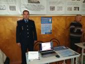 Викладач-методист факультету з підготовки працівників органів внутрішніх справ навчально-наукового інституту заочного та дистанційного навчання Олексій Процких продемонстрував присутнім рекламний відеоролик про навчальний заклад, розповів про його досягнення, структуру, напрями підготовки та спеціальності, про матеріально-технічну базу, особливості підготовки до вступу, умови навчання, проживання, побуту та дозвілля курсантів і студентів, а також роздав інформаційні буклети університету.