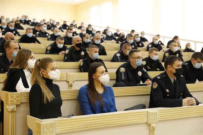 Ректор університету привітав присутніх із початком занять і зазначив, що колектив Харківського національного університету внутрішніх справ робить усе необхідне для забезпечення успішного та ефективного навчального процесу: «Підготовку поліцейських офіцерів громади будуть проводити професійні тренери, які також пройшли відповідні курси. Наші міжнародні партнери всіляко сприятимуть вашому навчанню, щоб ви отримали необхідні знання, якісну підготовку, а ми зі свого боку будемо організовувати й забезпечувати комфортні умови для навчання, самостійної підготовки, занять спортом і відпочинку. Університет має сучасну матеріально-технічну базу. Для відпрацювання практичних навичок функціонують навчально-тренувальні полігони – тактичний, криміналістичний, відділ поліції, центр боротьби з кіберзлочинністю та моніторингу кіберпростору, стрілецький комплекс, лазерний мультимедійний тир, центри корекційної та психодіагностичної діяльності тощо».
