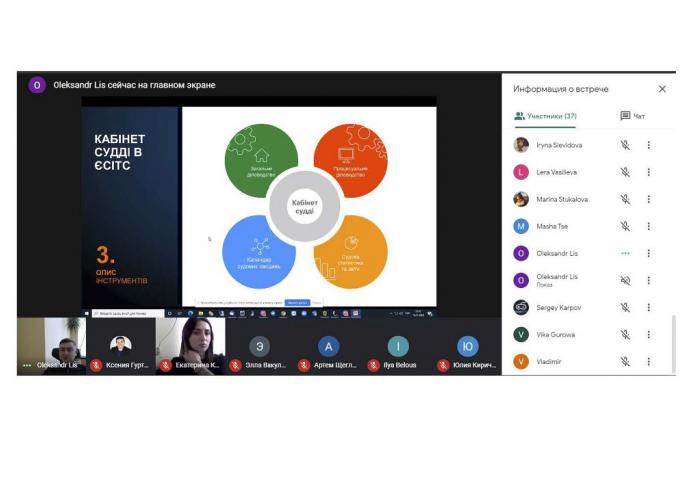 Учасникам заходу була представлена презентація щодо візуалізації основних складових ЄСІТС, а саме: ЄДРВД, ЄДРСР, Реєстр виконавчих документів, електронний суд, судова статистика, електронне діловодство, автоматизований розподіл, керування фінансово-господарським процесом, контакт-центр, web-портал СВУ.