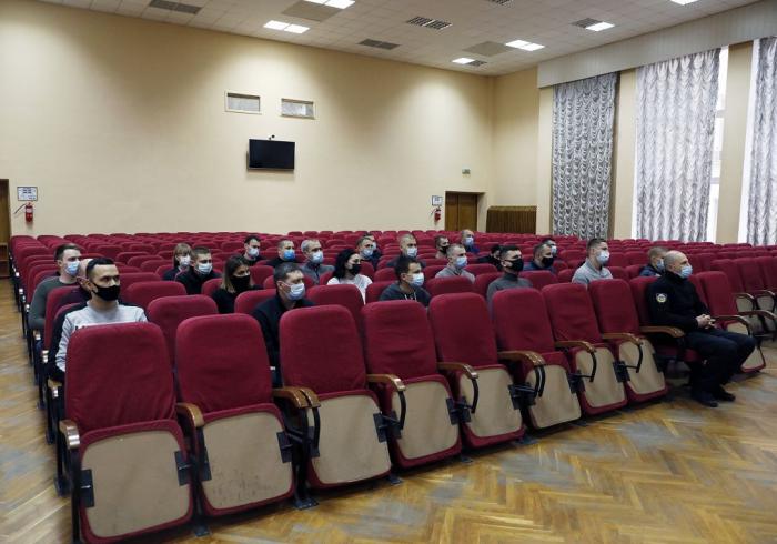 Зі слухачами первинної професійної підготовки зустрівся проректор університету Михайло Бурдін. Він наголосив на відповідальному ставленні слухачів до навчання, дотриманні службової дисципліни та правил внутрішнього розпорядку.