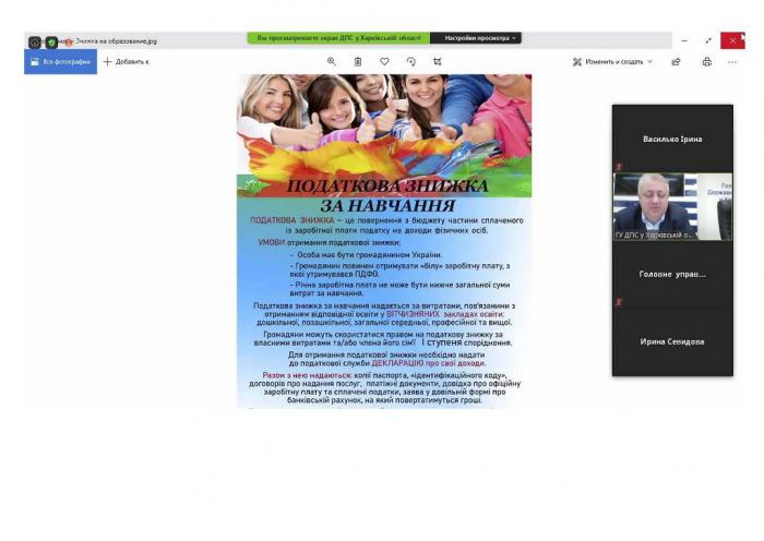 На базі платформи Zoom для працівників та студентів університету представники ГУ ДПС у Харківській області провели онлайн-лекцію на тему «Питання податкової знижки».