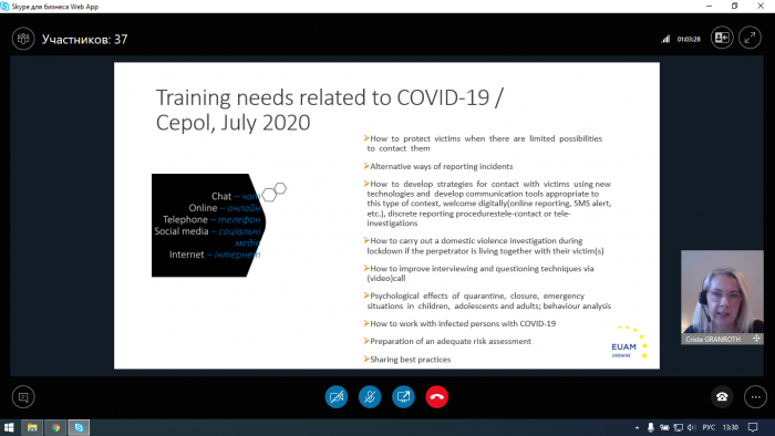 Спікером вебінару виступила радник/тренер з кримінальних розслідувань Регіонального представництва КМЄС у Харкові Кріста Гранрот (Фінляндія).