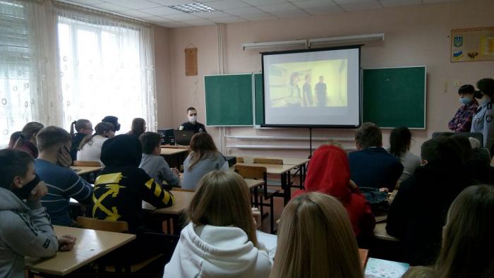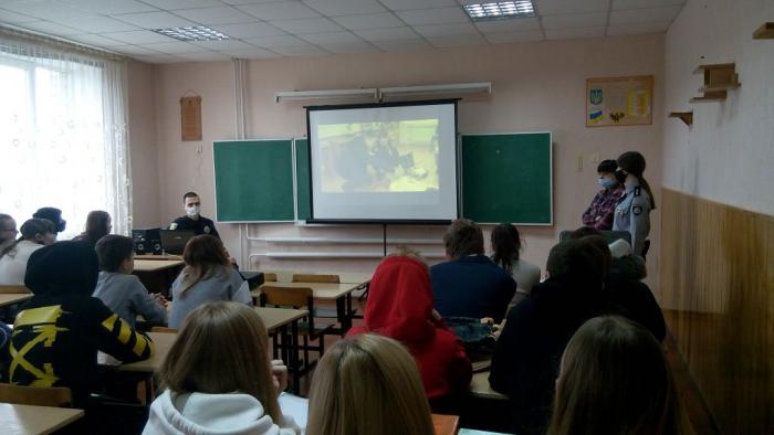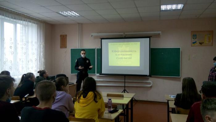 Інспектор Управління патрульної поліції в Харківській області, молодший лейтенант поліції Владислав Стеценк на прохання класного керівника 8-А класу Оксани Бут провів лекцію на тему «Кіберзлочинність у сучасному суспільстві». Він розповів дітям про види злочинів у кіберпросторі, про відповідальність за їх вчинення, та неприпустимість зламів чужих акаунтів, розповсюдження, або неправомірне використання отриманої таким чином інформації.