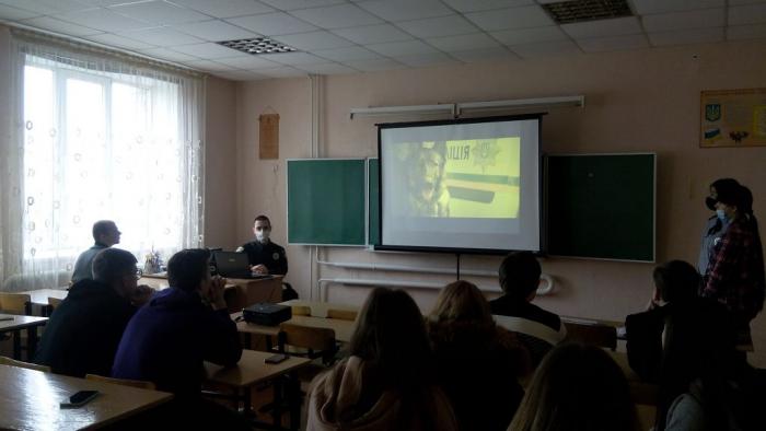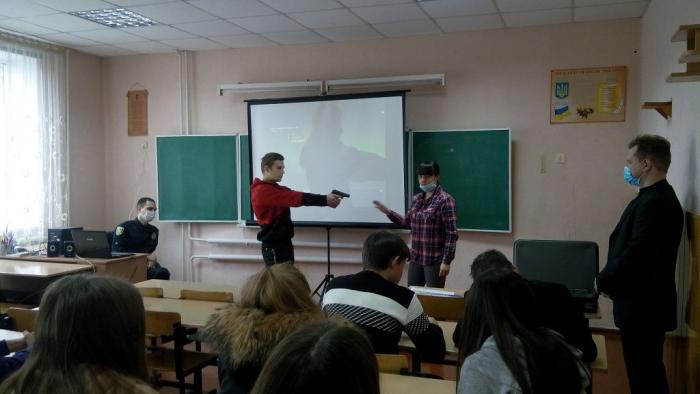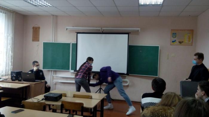 Представники Харківського національного університету внутрішніх справ Олександр Шульгін, Дар’я Балаш та Тетяна Хворост разом з інспектором Управління патрульної поліції в Харківській області молодшим лейтенантом поліції Владиславом Стеценком, відвідали Харківську загальноосвітню школу І-ІІІ ступенів № 90, де поспілкувалися з учнями 8–10 та 11 класів