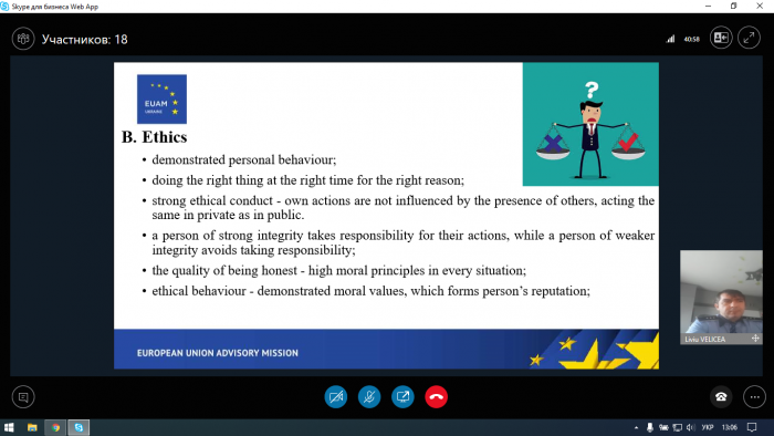 У ХНУВС відбувся онлайн вебінар на тему «Чесність та етична поведінка працівників поліції», що є останнім із серії вебінарів від Регіонального представництва Консультативної місії Європейського Союзу в Харкові.