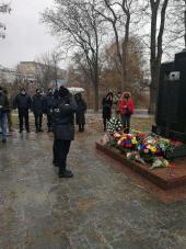 Курсанти 2-го курсу разом із інспектором Сумської філії ХНУВС старшим лейтенантом поліції Сергієм Паніотовим взяли участь у міських заходах із вшанування пам’яті загиблих учасників ліквідації аварії біля пам’ятного знаку «Жертвам Чорнобилю».