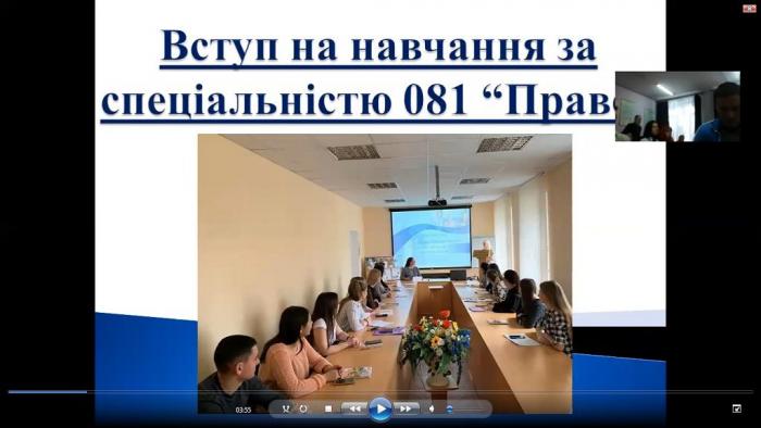 Кандидат економічних наук, доцент кафедри соціально-економічних дисциплін Сумської філії Харківського національного університету внутрішніх справ Людмила Парфентій за допомогою платформи Zoom зустрілася з учнями 11 класу Сумської ЗОШ І-ІІІ ступенів № 4 імені Героя України Олександра Аніщенка та провела з ними профорієнтаційну бесіду про перспективи юридичної освіти в Україні.