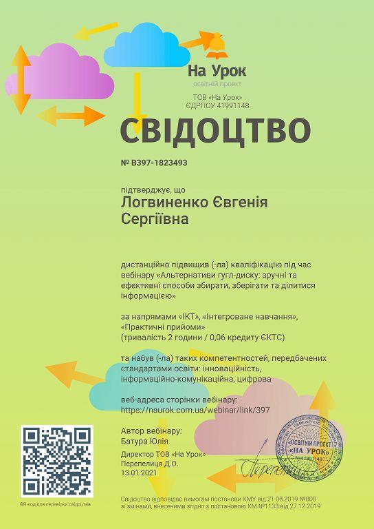 За результатами проходження підсумкового тесту отримано свідоцтво про підвищення кваліфікації. Набуті компетентності будуть використані в освітньому процесі.