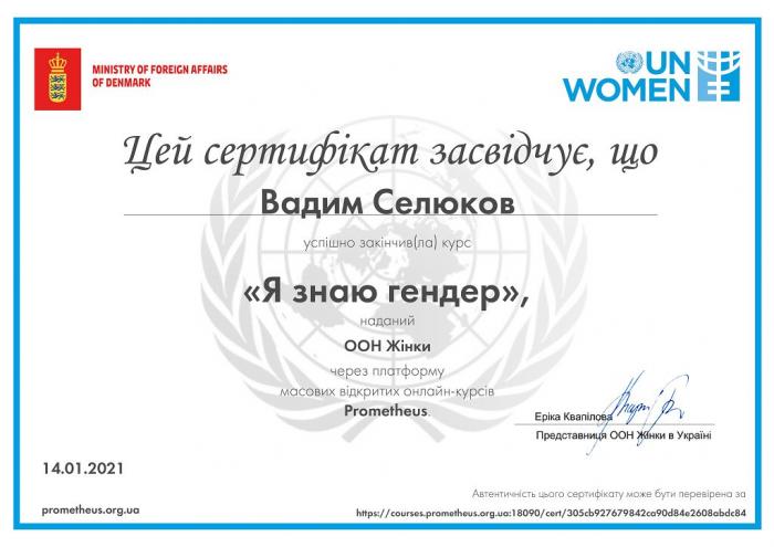 Представники науково-педагогічного складу кафедри поліцейської діяльності та публічного адміністрування факультету № 3 пройшли онлайн-курс «Я знаю гендер», який був наданий ООН Жінки через платформу масових відкритих онлайн-курсів Prometheus.