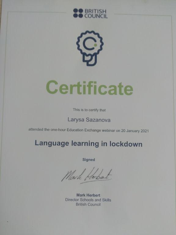 Старші викладачки кафедри іноземнихмов факультету № 1 Любов Русанова та Лариса Сазанова взяли участь у міжнародному освітньому онлайн-вебінарі «Вивчення мови в період локдауну» («Language learning in lockdown»), організованому Британською Радою.