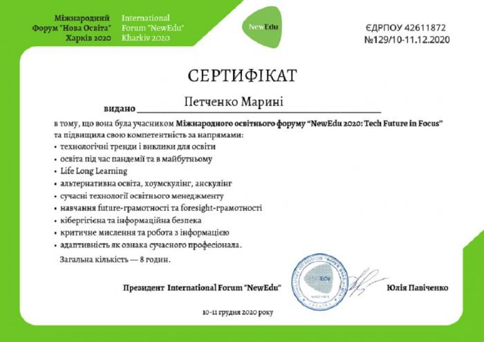 Представники Кременчуцького льотного коледжу Харківського національного університету внутрішніх справ начальник наукового відділу Марина Петченко, голова та викладачі циклової комісії філологічних дисциплін Оксана Савченко, Людмила Чижова, Людмила Іванченко взяли участь у V Міжнародному освітньому онлайн-форумі «NewEdu-2020: Tech Future in Focus».