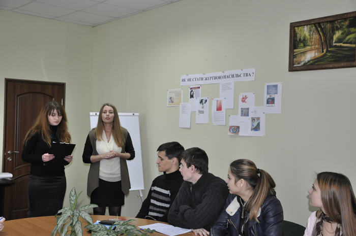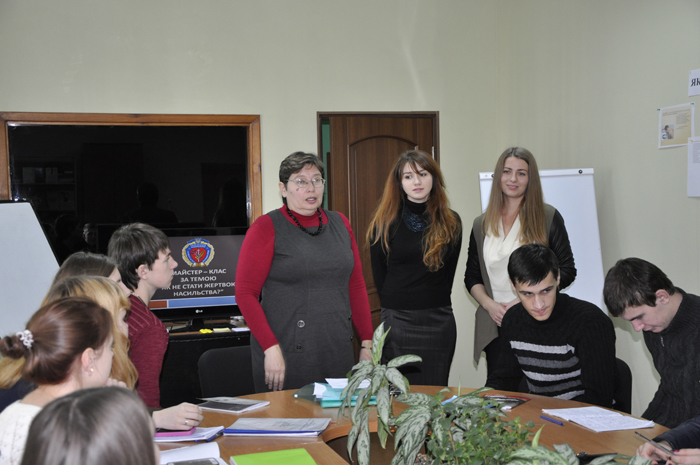 У семінарі-тренінгу беруть участь студенти факультету права та масових комунікацій. Мета тренінгу – сприяти формуванню у молоді та в суспільстві ненасильницької поведінки та захисту жертв насилля. Проводить тренінг-семінар завідувач кафедри соціології та психології факультету права та масових комунікацій Лариса Шевченко.