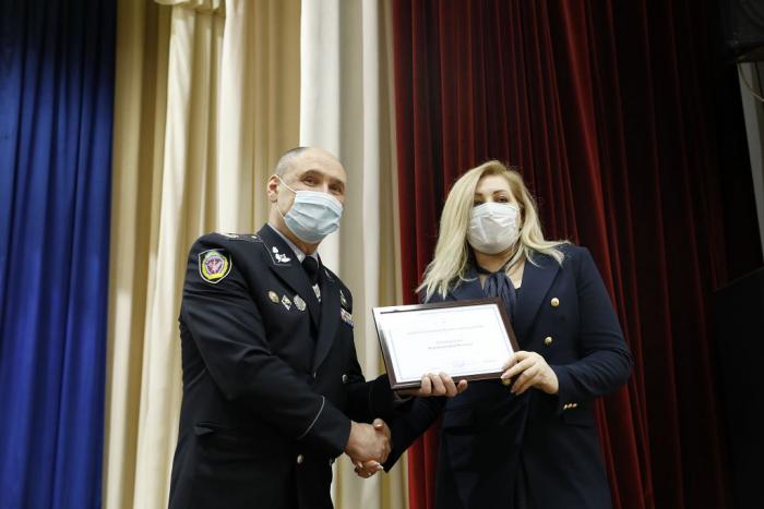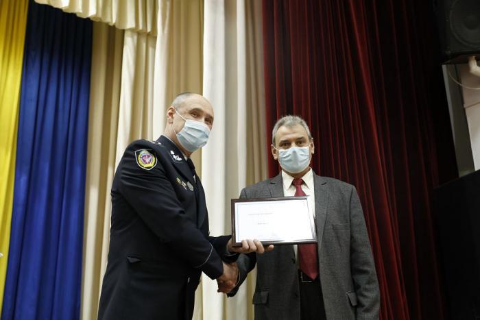 Ректор університету підкреслив, що між закладом вищої освіти і підрозділами Національної поліції Харківщини налагоджено тісну співпрацю, яка дає хороші результати і є корисною як для практичних підрозділів, так і для молоді, яка опановує професію поліцейського. Колектив університету постійно працює над удосконаленням навчальних програм, посилюючи їх практичну складову. Приємно, що добросовісну й наполегливу роботу високо оцінюють керівництво держави та Міністерство внутрішніх справ. Нещодавно Указом Президента було присвоєно почесні звання заслуженого працівника освіти першому проректору університету полковнику поліції Дмитру Швецю та заслуженого юриста України директору Сумської філії ХНУВС Сергію Лукашу.