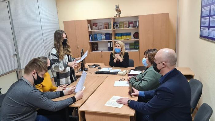 Захід був проведений для здобувачів вищої освіти ступеня «магістр» спеціальності «Право», які проходять виробничу практику в Юридичній клініці ХНУВС. Керівниця Юридичної клініки доцентка кафедри цивільного права та процесу факультету № 6 Елла Вакулович та кураторка доцентка тієї ж кафедри Тетяна Кириченко розповіли про систему методичних засобів процесу комунікації з відвідувачами.