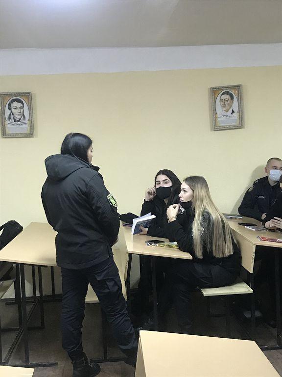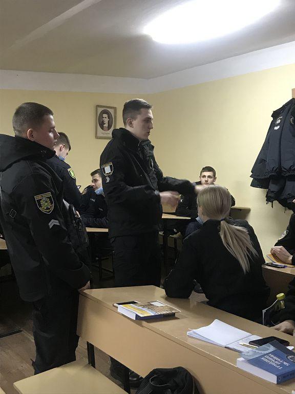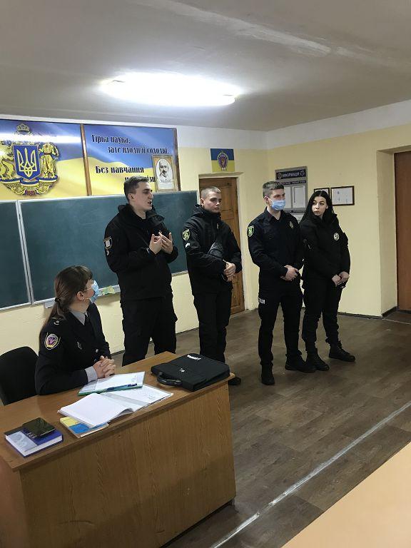 Заняття відбулося у формі жвавої дискусії. Поліцейські поділилися з курсантами досвідом практичної роботи, звернули увагу присутніх на тактику спілкування з громадянами, особливості роботи з документами, на особливості розслідування дорожньо-транспортних пригод, злочинів проти власності, сімейного насилля та наркозлочинності. Поліцейські наголосили, що наявність відповідного рівня знань із трудового права відіграє важливу роль у службовій діяльності. Обговорювалися також і численні питання взаємодії різних підрозділів Національної поліції.