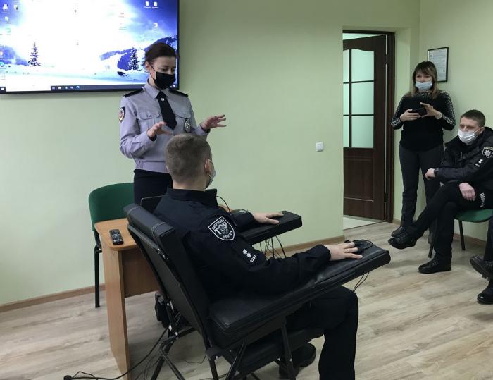 Поліцейські ознайомилися з основними принципами й методиками психофізіологічного дослідження з використанням поліграфа. Патрульні отримали можливість на собі перевірити роботу детектора брехні, перебуваючи у ролі досліджуваних на демонстративних тестах. Під час заняття особливу увагу приділили також і питанням щодо застосування поліграфа.