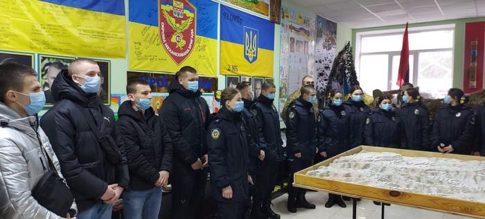 Курсанти та студенти поклали квіти до пам’ятного знаку Меморіалу Слави, відкритого у травні минулого року, та вшанували пам’ять загиблих воїнів бригади хвилиною мовчання. З гостями частини зустрівся начальник Будинку культури Павло Бендюг.